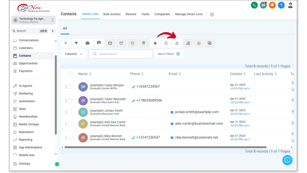 1. Go to the Contacts section of your SmartDirectory sub-account (not the agency view).