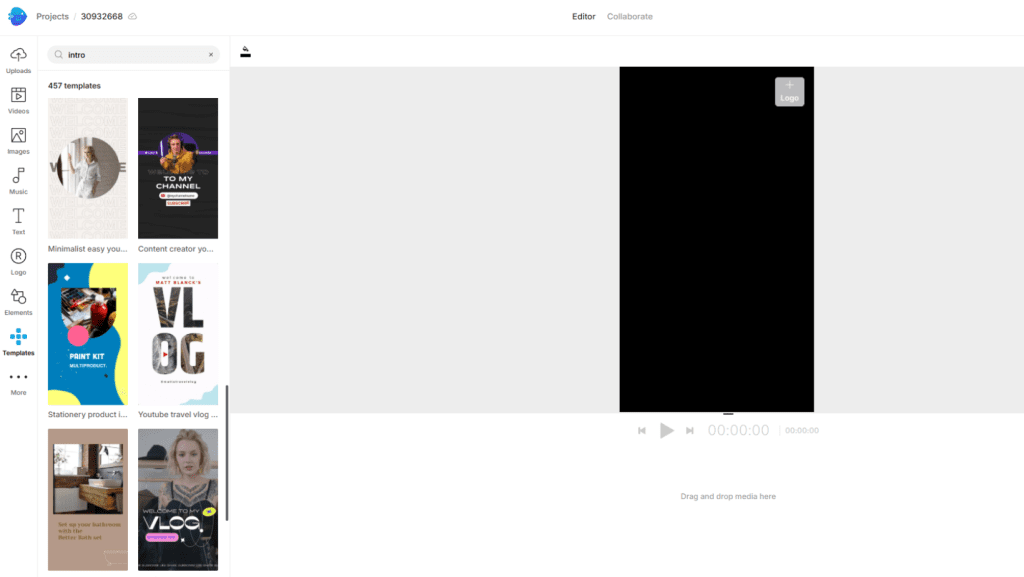 Invideo is strong out of the gate here. Its library of customizable intro and outro templates is massive. You can pick a style, drop in your logo, adjust the brand colors, add music, and boom, done. It’s ideal for marketers or agency owners who need quick, consistent branding across multiple videos.