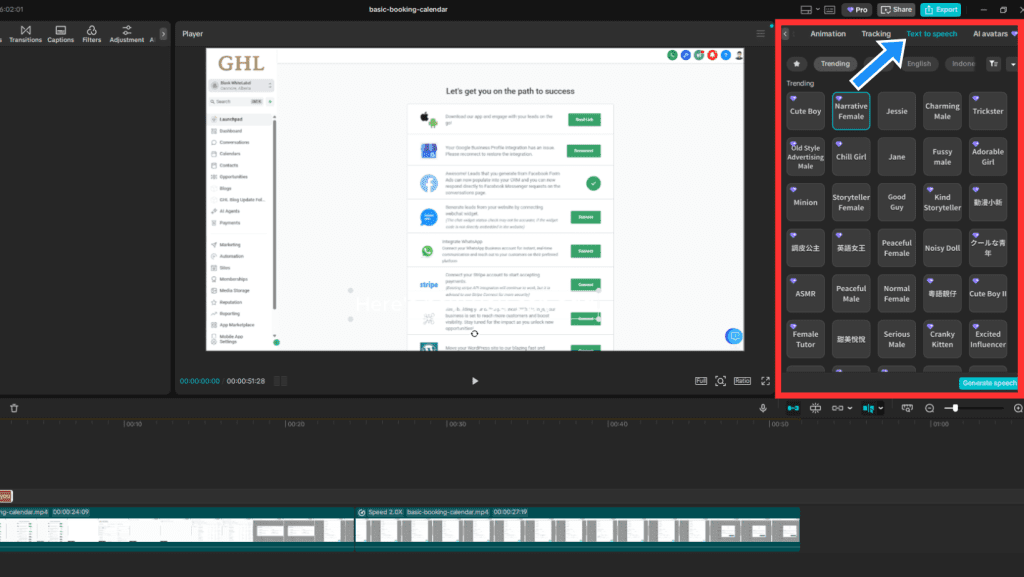 CapCut has come a long way in this space. It now includes native AI voiceovers with a surprisingly wide selection of voices, tones, and languages. You type in your script, choose a voice that fits your audience (professional, casual, friendly), and it auto-generates the narration. It’s smooth, fast, and actually sounds decent especially for a free tool.